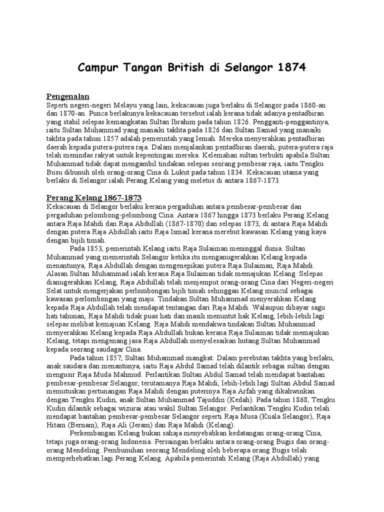 Bincangkan Faktor Faktor Campurtangan British Di Perak Dan Selangor Pdf