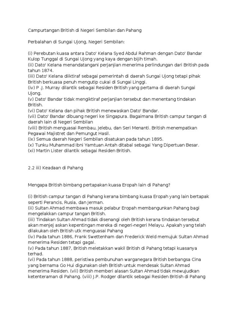 Nota Pismp Ks Sejarah Campurtangan British Di Tanah Melayu 2